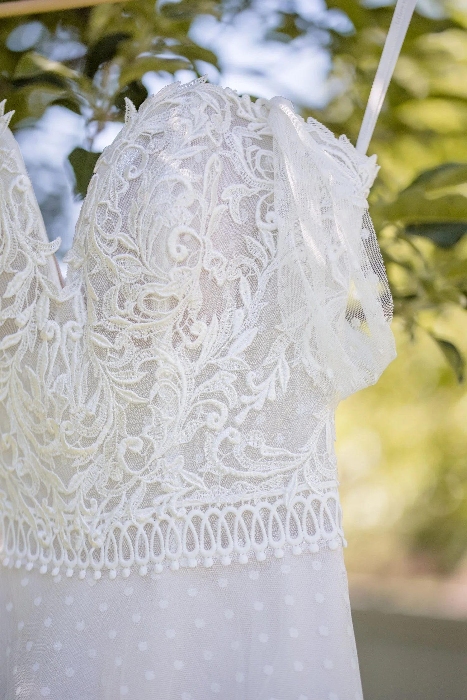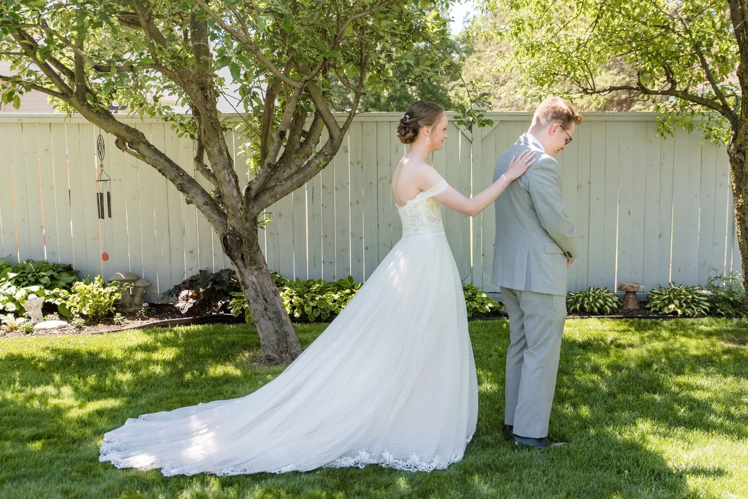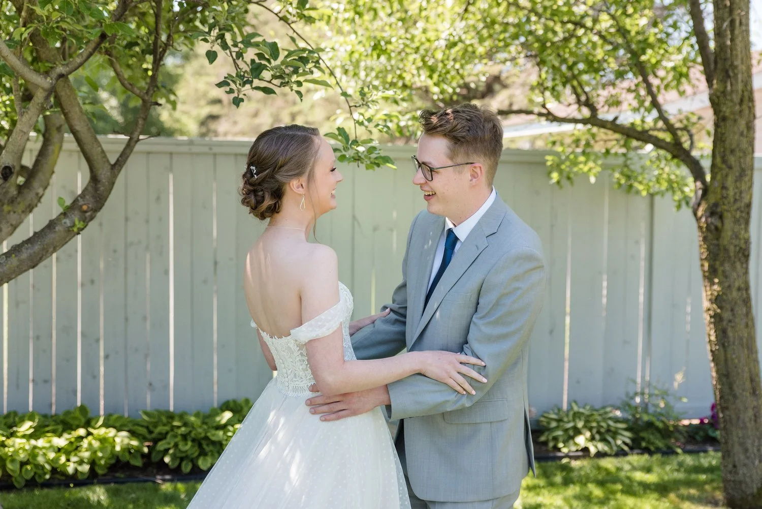 Kailey got ready at her parents’ home, which also provided the perfect location for her first look with Matt. (A special shout out to her dad for quickly fixing the fence after the storms that came through just a few weeks prior!) Under the shade of two beautiful apple trees, Matt saw his bride for the first time.