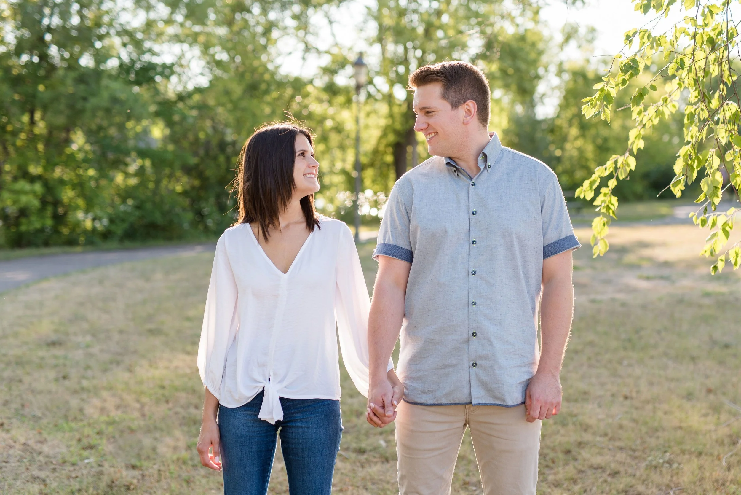 I met Emily and Nick at Boom Island Park on a sunny summer evening for their engagement session and we had a perfect evening. When we had previously talked via zoom, I got allllll the good vibes from them, so I was super excited to get started.