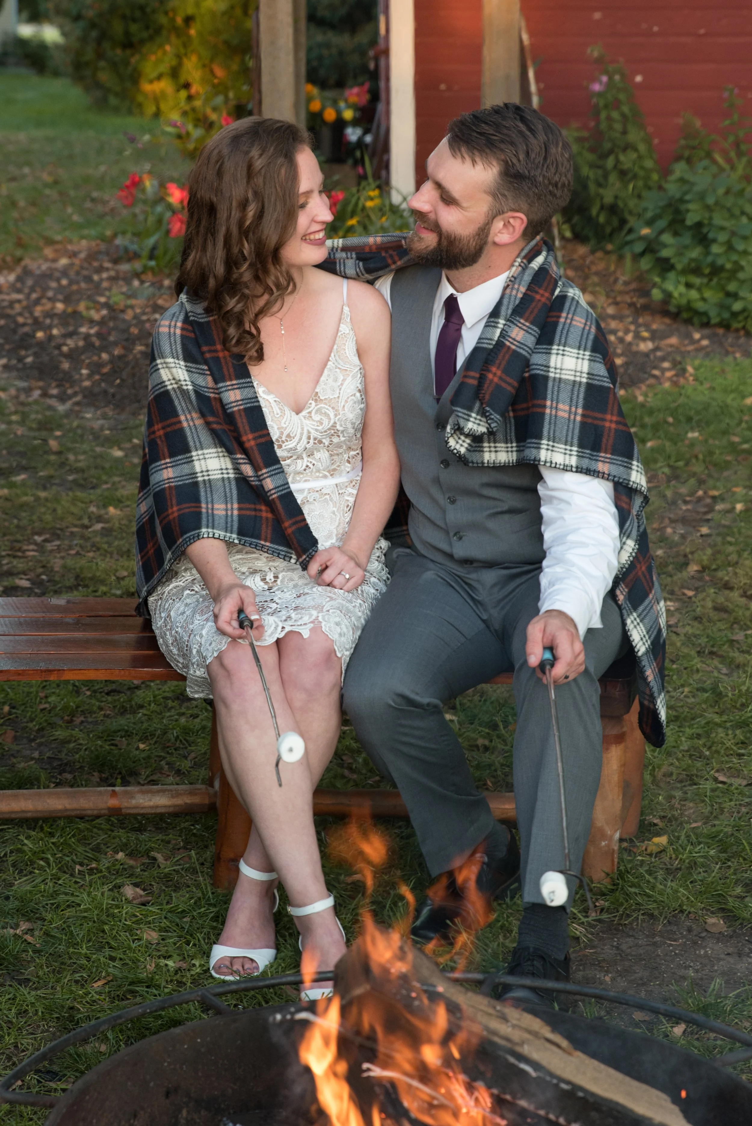 On the flip side, if you’re expecting a chilly evening, supplying a basket of blankets or hosting a campfire and s’mores can keep your guests cozy and warm. Ask your venue about tall heat lamps; they’re a big crowd-pleaser!